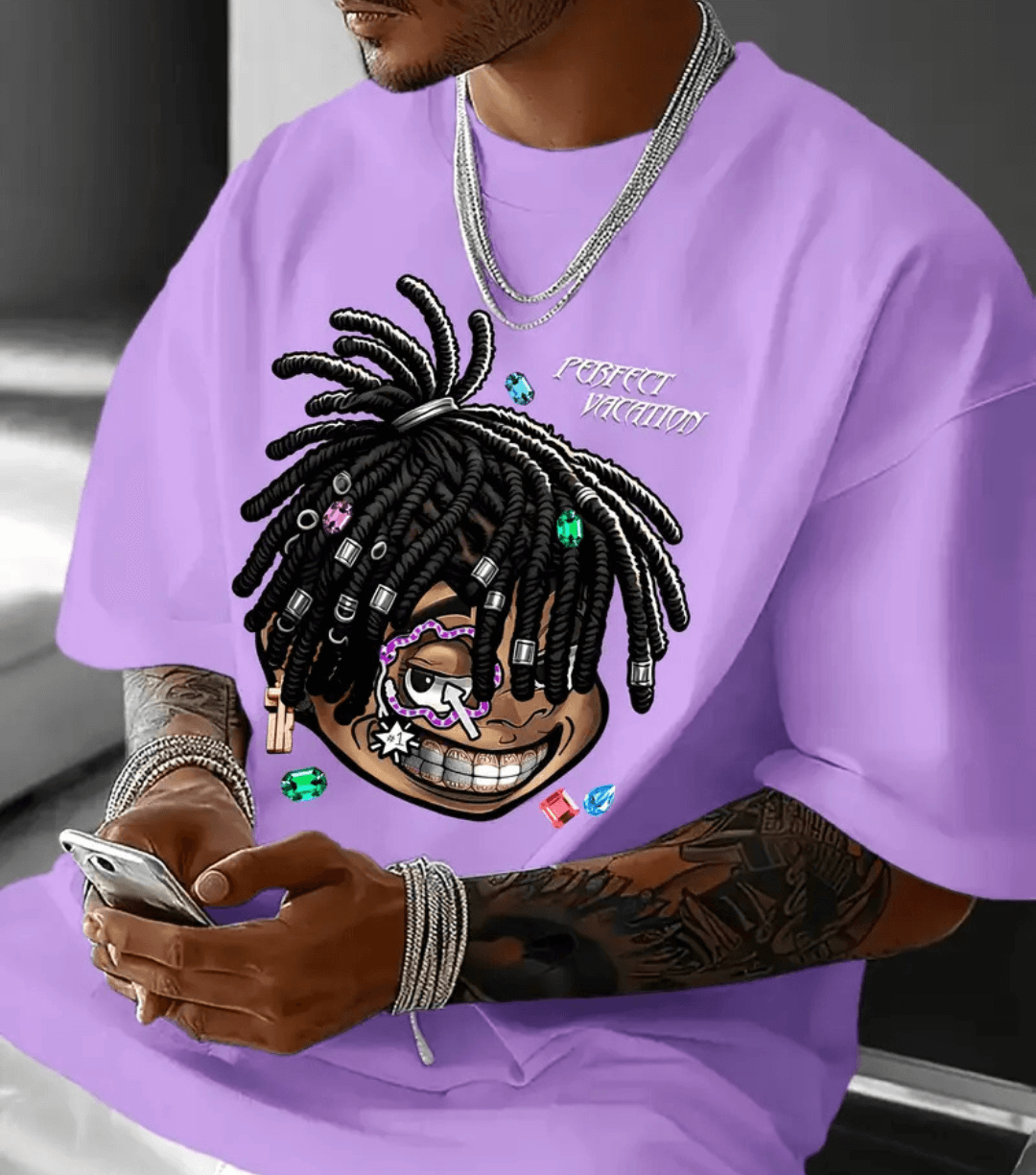 Men’s Casual Graphic T-Shirt with Synthetic Gemstone