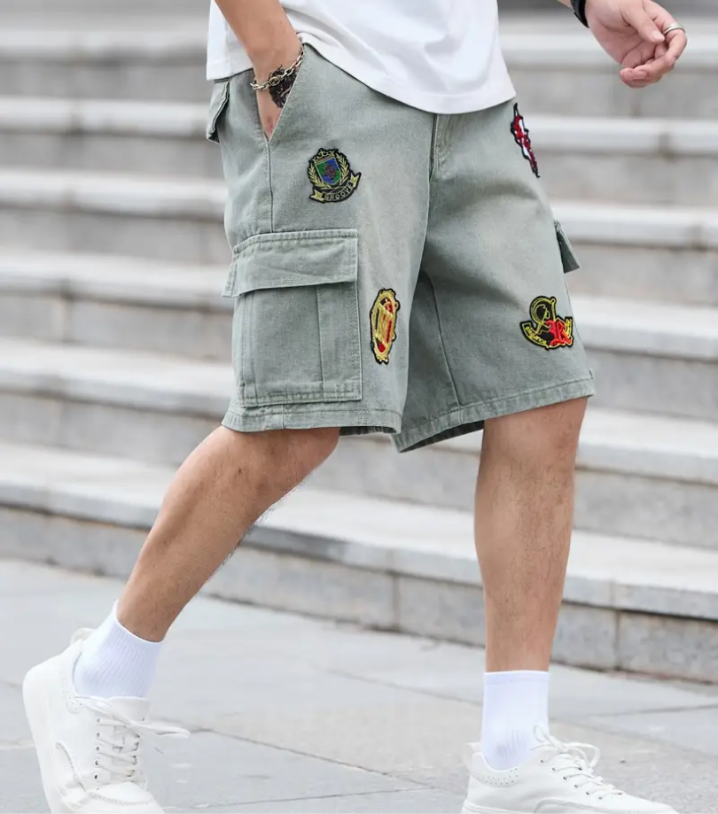 / Men’s Heavy-Duty Denim Cargo Shorts with Multi-Pocket Workwear Design