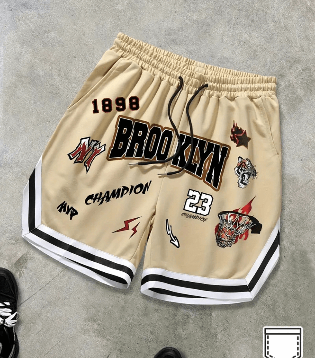 / Men’s Summer Khaki Shorts with “Brooklyn” Print