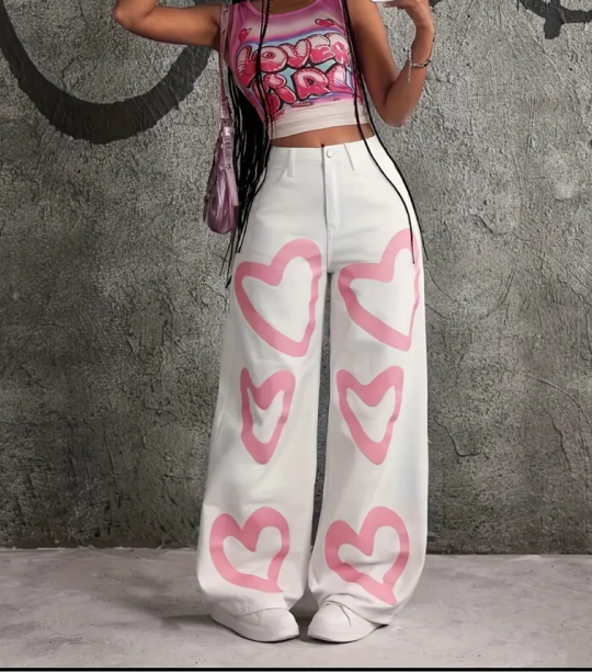 / One Pair of Stylish Heart-Printed Women’s Straight-Leg Pants